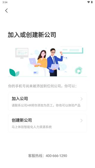 1、首先你需要使用手机号创建一个账户,接下来就会来到下图页面,你需要选择加入或者是创建公司,选择不同,使用的功能也不同,小编选择的是加入公司