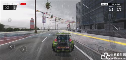3、进入赛场之后就是你操作的时间了,通过左侧的方向键来控制方向,有着的是刹车,油门和手刹,第一道到达终点的是胜利者