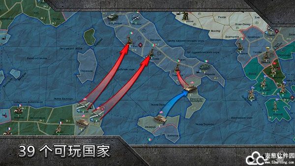战略与战术1中文版是一款沙盒战争游戏,以第二次世界大战的欧洲战场为背景、题材制作,玩家将会扮演其中一个势力的指挥官,体验那些历史上的经典战役,这里结局并不固定,或许您可以利用自己的策略来改变历史战役结果,那将会是无与伦比的成就感哦。因为根据真实历史打造,所以游戏中很多兵种都是耳熟能详的,兵种也多,步兵、坦克、战舰、飞机等,您可以选择不同的方式来征服敌人,当然了,选择具备克制关系的兵种会让胜利更加轻松一些。游戏的作战采用的是回合制,这也是一个热门的题材,在属于您的回合做出部署,比如派出部队进攻,需要计算行军需要的回合时间,还有回来需要的时间,不要让自己领地陷入空虚,利用策略,在战略与战术1中取得战争胜利吧。
