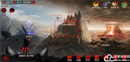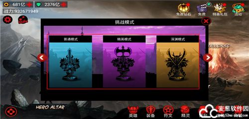 1、进入游戏之后,点击CAMPAUGN开始章节闯关,选择你想要挑战的难度等级,这里有普通模式,精英模式和深渊模式