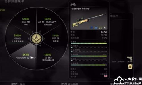 =AWP,价格4750,游戏武器中威力最大的枪械,打中四肢以外的躯体1枪必死。