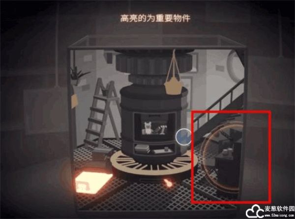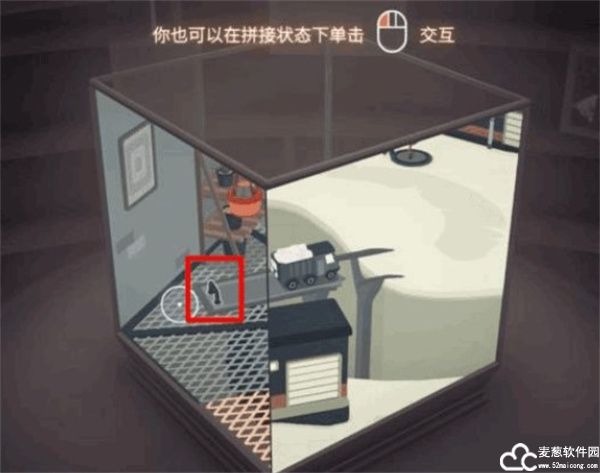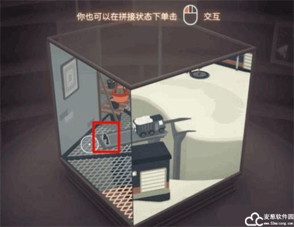 笼中窥梦手游免费版,我们可以利用桌子上的台灯进行拼接,从而将仓库门前地面上的井盖抬起,打开立方体上部的画面。