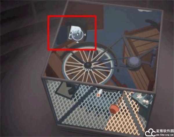 使用阀门关闭出水口后放大自行车的视野,在自行车后轮旁边的保险箱中可以找到该照片。