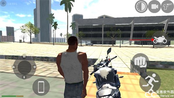 3、走到摩托车边上就会出现这个按钮,可以点击上车;