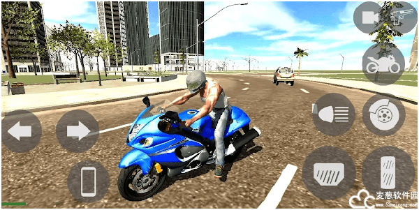 印度摩托车驾驶3D最新版是一款模仿看门狗制作的游戏,看这个名字大家是不是认为这是摩托车竞速游戏,确实有驾驶玩法,但只是一部分,还有射击,格斗等玩法,内容很丰富,可玩性高。游戏中有着大地图,自由性很不错,地图是都市类型,有着很多房屋,玩家可以自由探索,有子弹、枪械,但也要小心敌人,作战大部分也都是在房屋内进行的,依靠掩体作战,更考验技术。驾驶玩法也是游戏的一大亮点,主要给大家介绍一下摩托车驾驶,左侧是控制方向的,左右两个键,右侧有油门、离合、刹车等,还可以开启车灯,游戏中也是有白天和黑夜的,还有光影系统,画面表现不错,车辆驾驶的体验也贴近真实驾驶了,非常畅爽,在印度摩托车驾驶3D享受速度与激情吧。