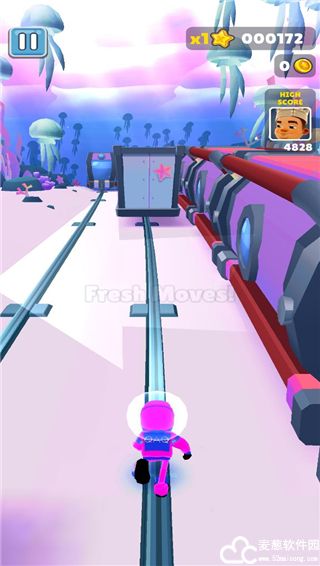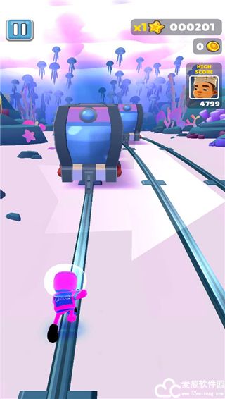 3、通过向左和向右滑动来改变角色的路线以此来躲避迎面而来的火车