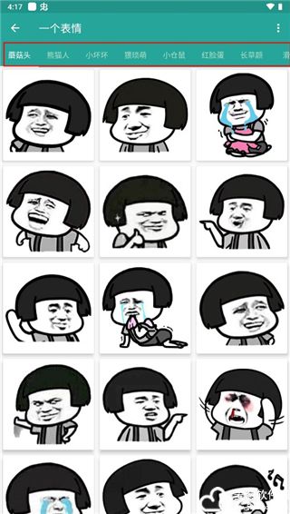 2、选择一个表情,在上方有着大量的素材版块可以选择,找到想要的之后直接点击即可