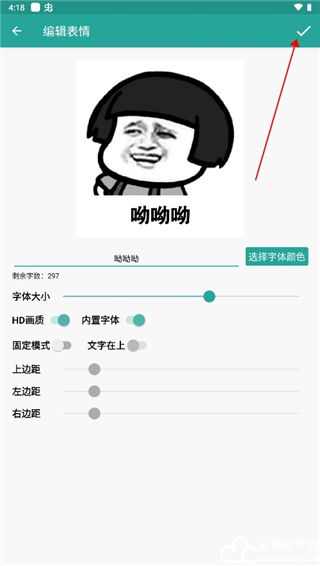 4、设置好之后点击右上角的√,这样一个表情包就制作好了,在表情包下方的这是保存路径,表情包就保存在那里