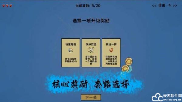 4、在游戏中,每一次关卡都是随机生成的,病原体的入侵方式和数量也会有所不同。