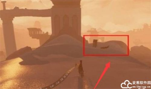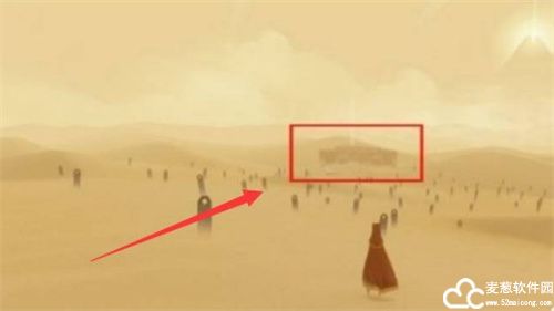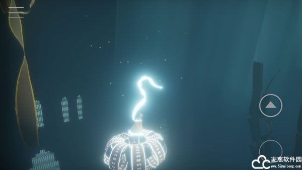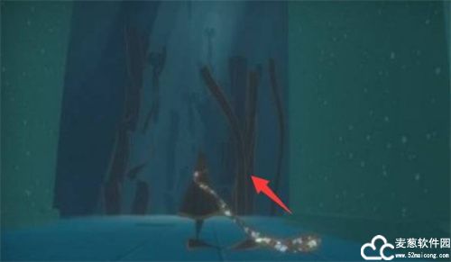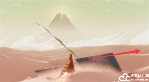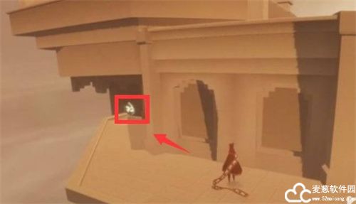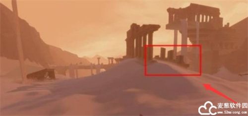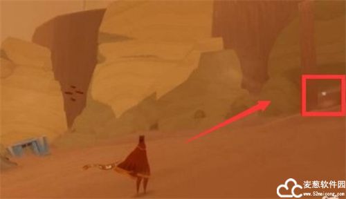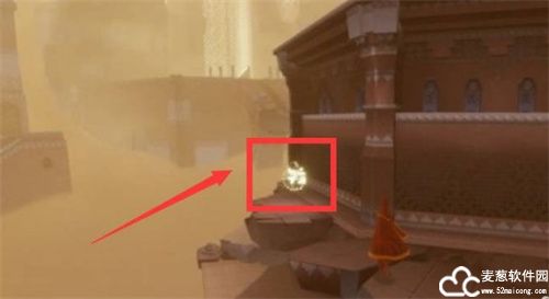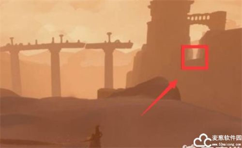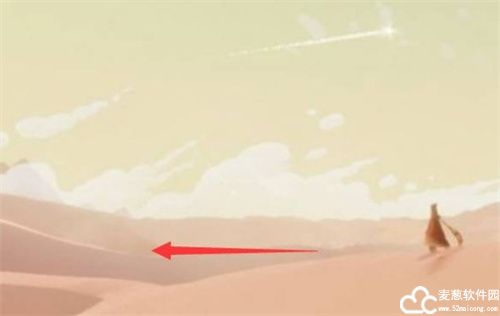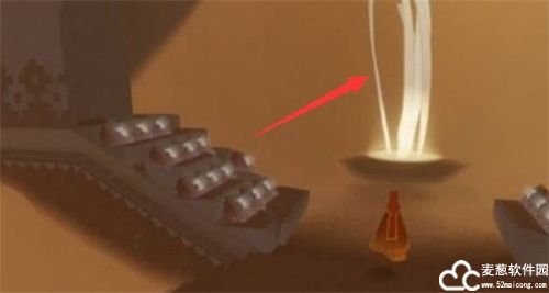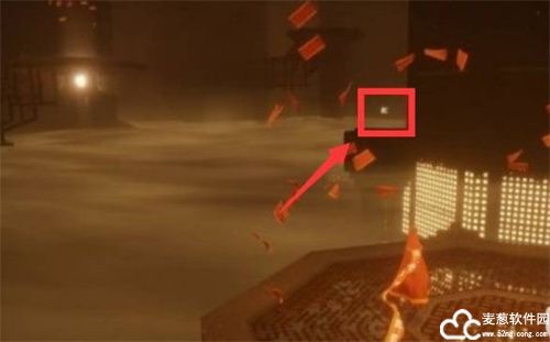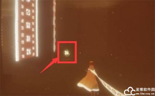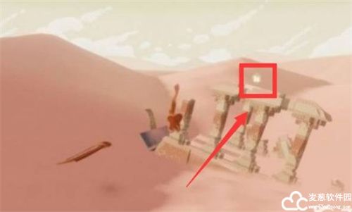 14、风之旅人安卓版手游,在新关卡第一幕坠落过程中,要注意在到达这个位置时,进入图中的方框区域会找到第十一个发光符号。