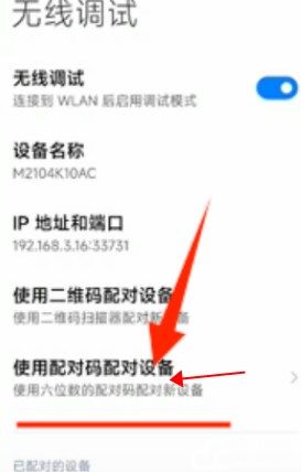 2、选择配对码进行配对,打开无限调试后这些功能就可以使用了哦;