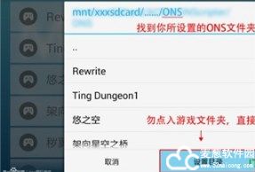 MiNE的话,点齿轮,点”游戏路径设置”找到你放游戏的”ONS”文件夹,点击后点”设置目录“。左边就列出你的游戏文件夹。
