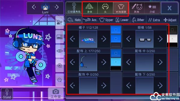 2、角色可以更换身体、头、服饰等,并且每一个类型的更换都提供很多内容;
