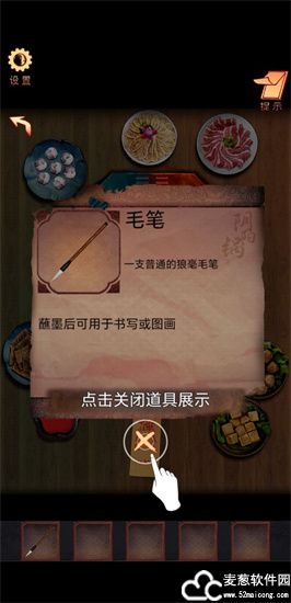3、这个毛笔就没有线索,但也是一件道具,具备交互作用哦;