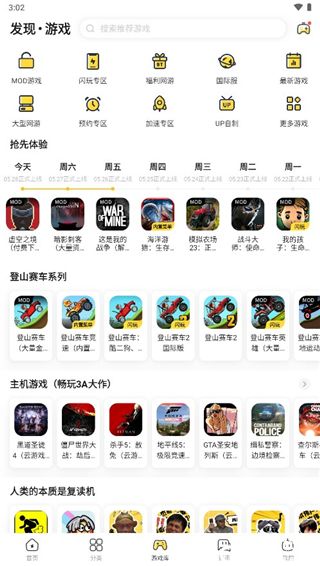 3、在游戏库中,根据游戏的特点将它们分成了不同的版块,有MOD游戏,闪玩专区,福利网游等