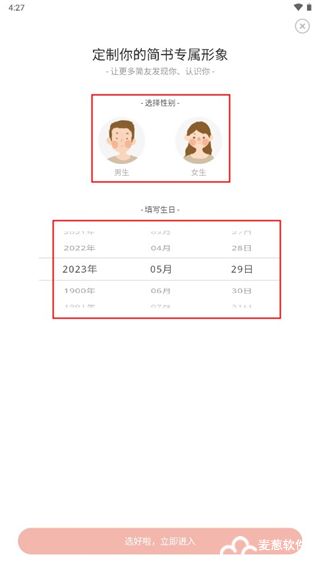 1、首先打开软件,你需要设置好自己的性别和年龄,可以跳过,也可以随意设置