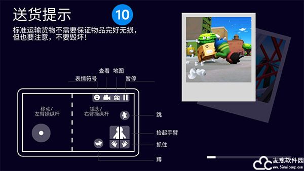 3、这里的活动主要指场景的交互,物品的交互。但基本上就没有。一般一个快递,摔的不超过一定次数,基本上可以达到最高成绩。实在一次不能摔,就将双臂举过头顶就好。没有啥趣味。环境简易,任务轻松,不经让人产生疑问,在一个那么丑的地方,还只是个送货的,唯一就是解锁解锁成就或者装饰的,我到底是来干嘛的?送快递解锁成就或道具的