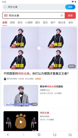 3、输入鸡你太美并点击搜索,软件就会将所有相关的内容提取并展现在用户面前,剩下的用户只需要慢慢挑选就可以了