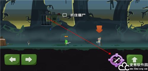2、靠近僵尸之后,点击右下角的捕捉按键可以对僵尸进行捕捉,注意,因为捕捉器的攻击距离有限,所以需要靠近一段距离之后在进行捕捉
