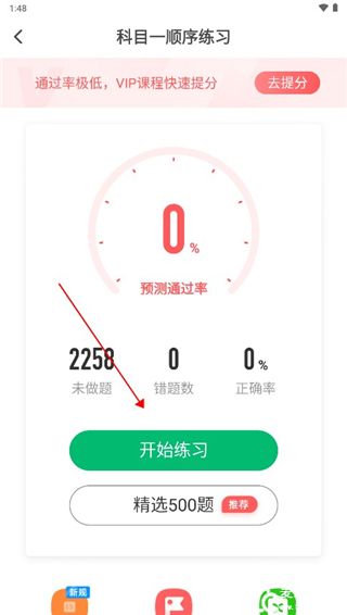 3、随后点击开始练习,系统会根据用户的正确率来估算通过率