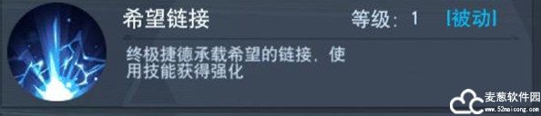 被动技能:希望链接终结捷德承载希望的链接,每一次使用技能都可以获得增强