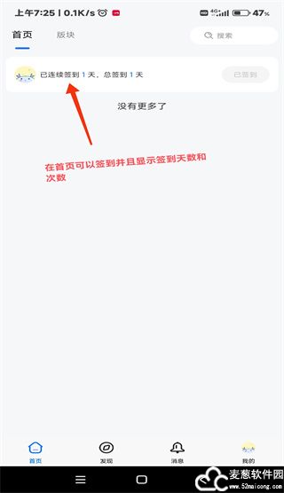 1、首页里面可以显示签到并且显示签到天数和次数