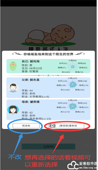 4、游戏中设计了很多种特殊基因,如高智商基因、双胞胎基因、高颜值基因等等,让虚拟人物更具个性化。