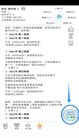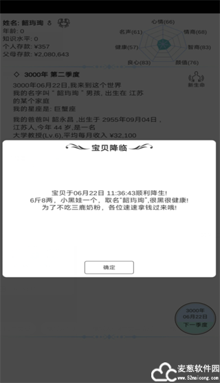 2、游戏中有大量随机事件和决策,玩家需要做出选择来影响虚拟人物的人生。