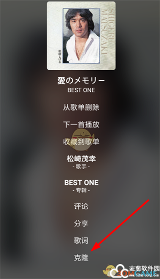 3、在查看歌词的地方,有“克隆”功能,点击就可以下载歌曲了。