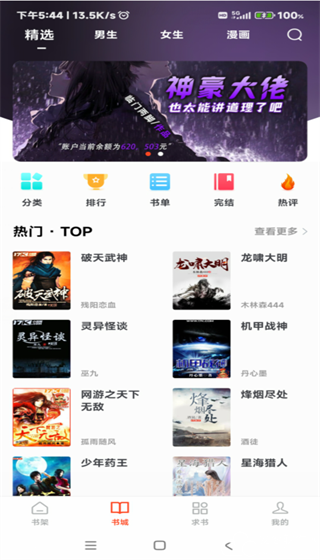 天天追书app是一款专门看小说的软件,看书免费,四个页面,在书架页面存放的是一键选择男生频道和女生频道的推荐书籍,如果不符合你的胃口的话可以直接删除,平时你看的书在关闭之后都会提示你要不要加入书架,有喜欢的小说那就加入书架吧,便于下次书荒不知道找拿本书看,漫画也一样是这种管理,书架的搜索只能在当前区域里面搜索,右上角的更多可以设置封面模式,书架的排序按最近阅读和更新时间的选择来排列,如果你忘记之前看的书是什么,记得数据恢复看就可以找到,在书城页面,每本小说都被分类的详详细细,你需要查找什么小说,直接选择相对应的标签,一定会查到的。如果在天天追书你搜索不到你想要的书籍,你可以直接在求书页面,向官网推荐这本书,让他们上架,在我的页面,用户可以管理账户的信息,除了小说以外,还可以看漫画,包括跟换夜间模式,都是很好用的功能