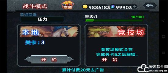 2、有本地模式和竞技场模式