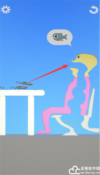 2、通过手指滑动屏幕将食物引导到主人公的嘴巴里