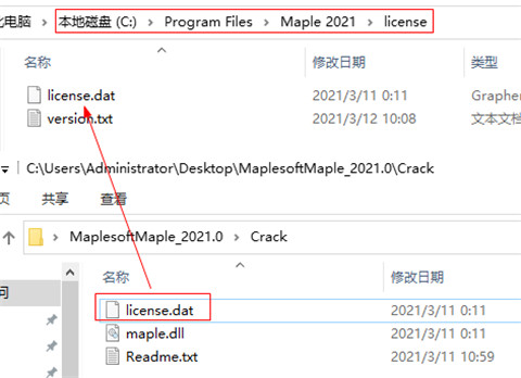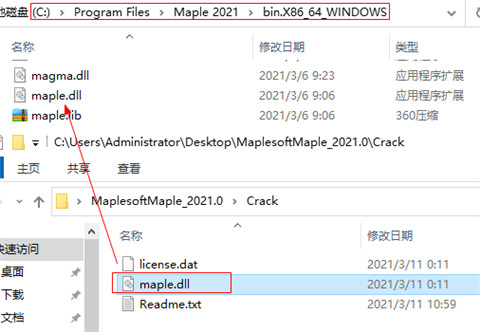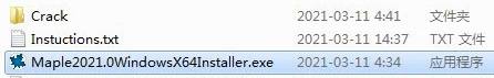 1、将本站提供的文件下载并解压,得到Maplesoft Maple 2021源程序和破解补丁