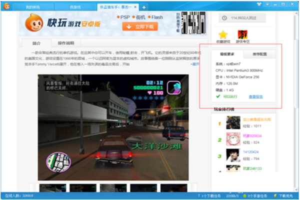 2、你可以点击界面的找游戏选项,然后任意找到一款游戏,或者在界面的右上角搜索框中搜索想要的游戏,然后就进入游戏详细介绍页面,可以自动检测你的电脑配置,然后在界面右侧会提示用户是否可以运行游戏(小编建议用户电脑配置未达标尽量不要下载使用。)