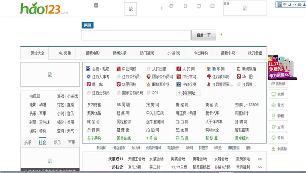 12、支持网站导航,可以直接在首页找到京东、淘宝、虎牙、优酷等经常访问的网站