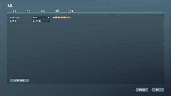 4、进入游戏既是中文界面,打开设置即可开始游戏的设置;