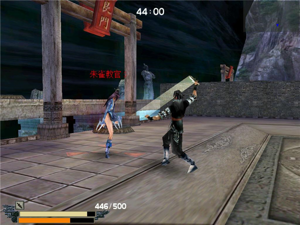 第四关--金华城:刚开始和铁胡子对话时按ESC键,然后选取消,你就可以动了。冲上去尽量先杀了一个铁胡子,然后和另外两个铁胡子打时让他们把自己的气打满,然后再杀一个铁胡子,让最后一个铁胡子去报信。你这时候换出匕首,吃个火属性,然后再吃一个加攻击的护碗。然后找到王强,趁你和他对话的时候按ESC键然后取消,给他吃一个匕首超大,嘿嘿!他不死也残废!然后你就专打王强。这样就过了!