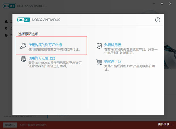 7、进入到激活界面,点击选着“使用购买的许可证密钥”。