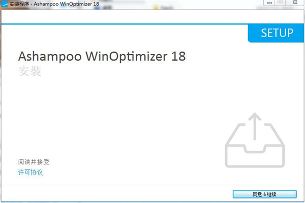 1、下载并解压,运行EXE程序,来到安装界面,点击同意并继续。