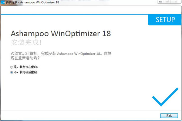 4、安装完成,选择稍后重启,点击完成退出安装界面。