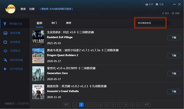 5.进入修改器大全界面,在修改器搜索框内输入你需要进行修改的游戏名