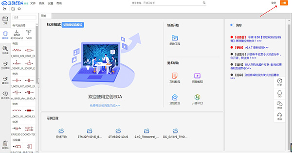2、支持用户注册个人账号登录该软件进行电路设计以及购买电子设备
