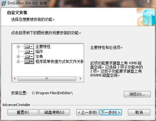 5、选择软件的安装目录以及功能,可以选择其他位置安装,功能可以自由选择。