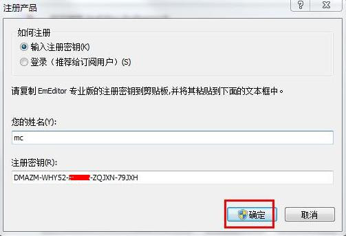 3、输入姓名和,软件包中的注册密钥,点击确定。
