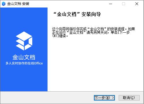 1、在本站下载金山文档压缩包后解压双击运行.exe文件开始安装并点击"下一步"