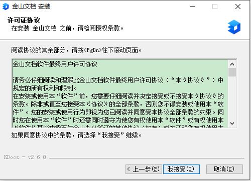 2、点击"我接受"许可协议中的条款进行下一步操作