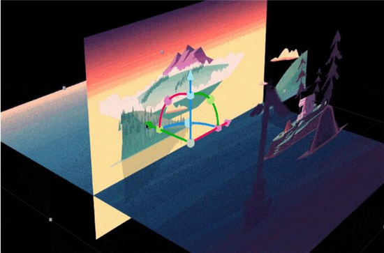 2)如果您在构图中对镜头有特定的构图,则有助于应用相机视点进行参考。一旦制作了2D图层3D,就可以立即在3D空间中移动,因为相机是自动应用的。现在,您可以从此角度进行动画处理。将2D和3D元素组合在一起时,这使其更加直观和流畅。