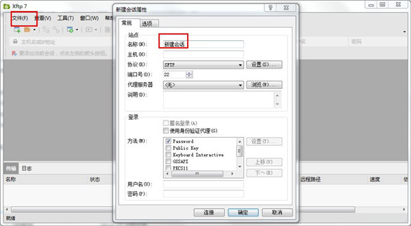 1、双击打开软件,点击文件,选择新建,新建一个会话,填写站点名称以及主机名称等信息。