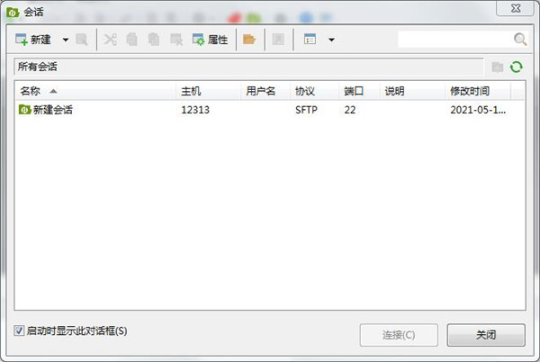2、点击确定之后就可以看到创建完成了,选中会话右键选择打开,可以打开会话。
