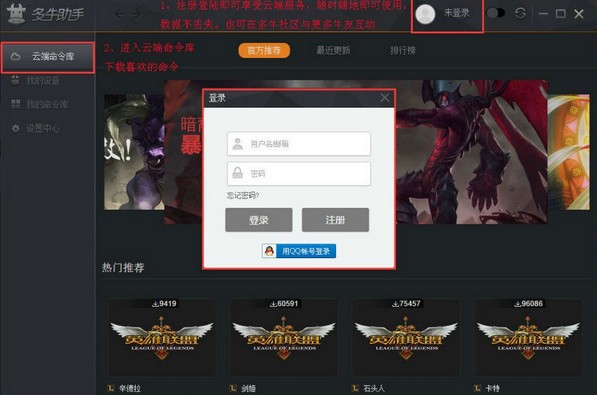 1、安装后,打开客户端进入首页,注册手,下载或自己录制命令